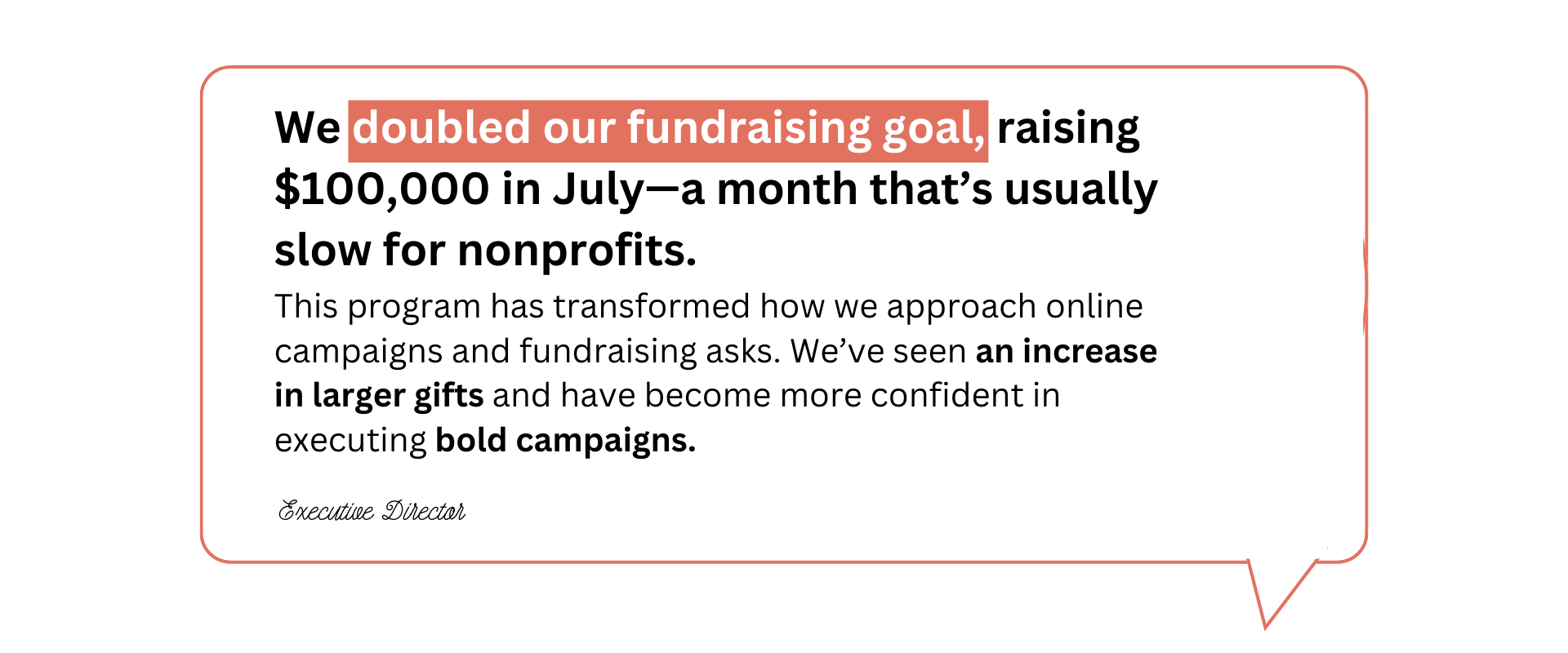 Slow donor cultivation cycles and slow funding growth is out! The Club is a professional development program designed for fast revenue growth and impact. You will:
