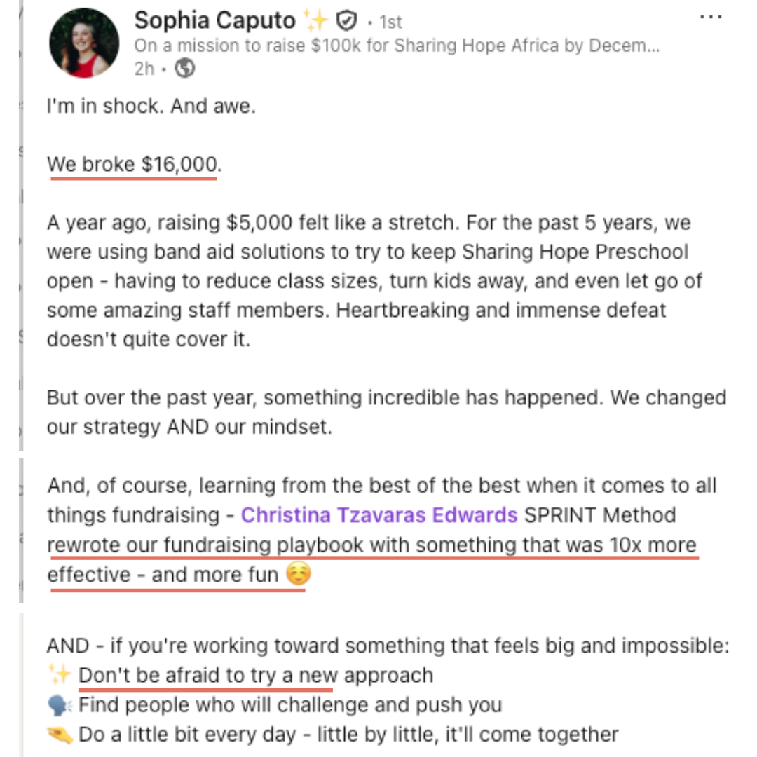 None of this is your fault — your fundraising feels hard because traditional tactics don’t create a fast, clear finish line and that’s exactly what The SPRINT Method™ was built to fix.